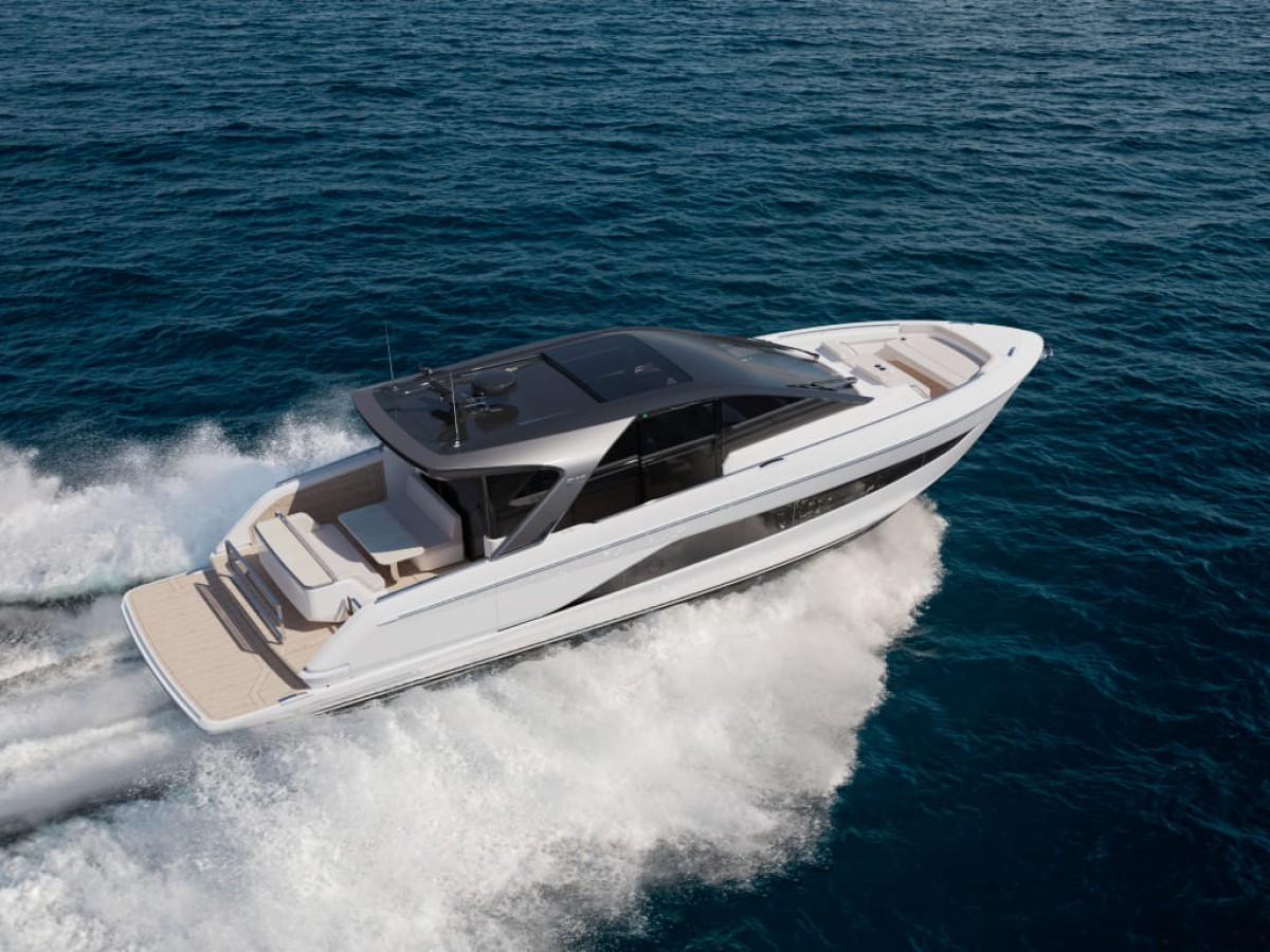 The Princess C48 Deck Saloon is designed for those who value a perfect balance of luxury and practicality in any environment. Its fully enclosed main deck, featuring panoramic windows, sliding doors, and an optional retractable roof, allows you to enjoy the sea in all weather conditions — from hot sunny days to cool evenings. The interior embodies Princess’s timeless craftsmanship, with elegant lines, soft tones, natural materials, and meticulous attention to detail. The main deck seamlessly connects a comfortable salon with a dining area and a fully equipped galley, creating an open, flowing space with the cockpit. This versatile layout provides the ideal setting for dining, relaxing, or entertaining guests while maintaining a sense of openness and light. Below deck, the C48 Deck Saloon offers two well-appointed cabins, a spacious bathroom, and a central lobby with ample storage — perfectly designed for both short escapes and extended cruising. The Michael Peters SVVT hull delivers outstanding stability, smooth performance, and efficiency, ensuring the C48 Deck Saloon moves with confidence, agility, and elegance across the water.