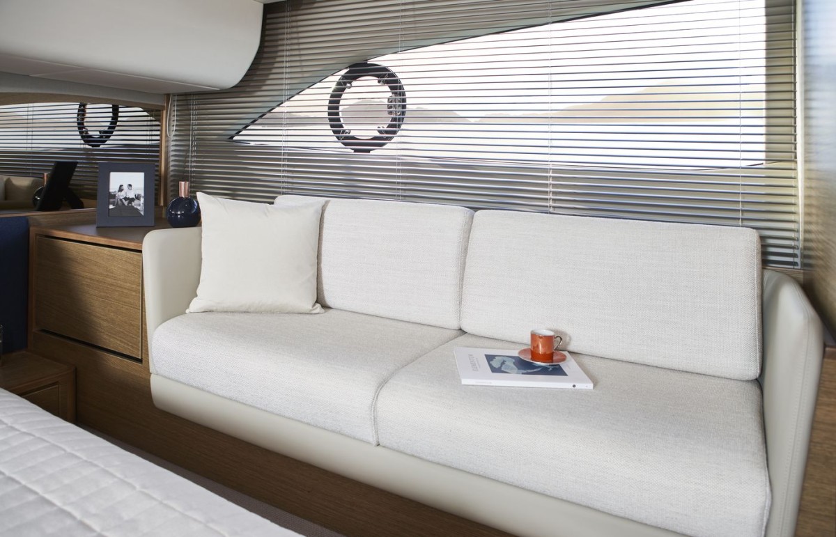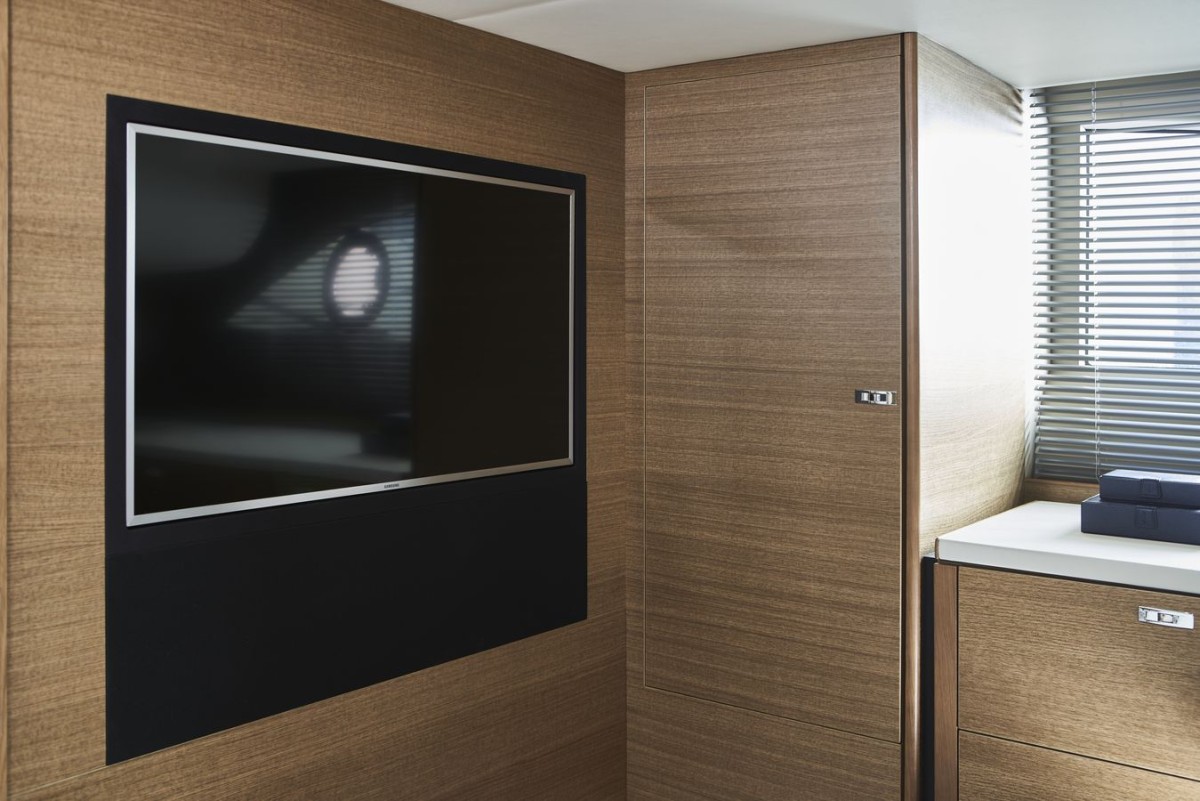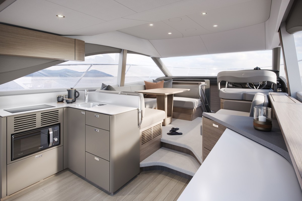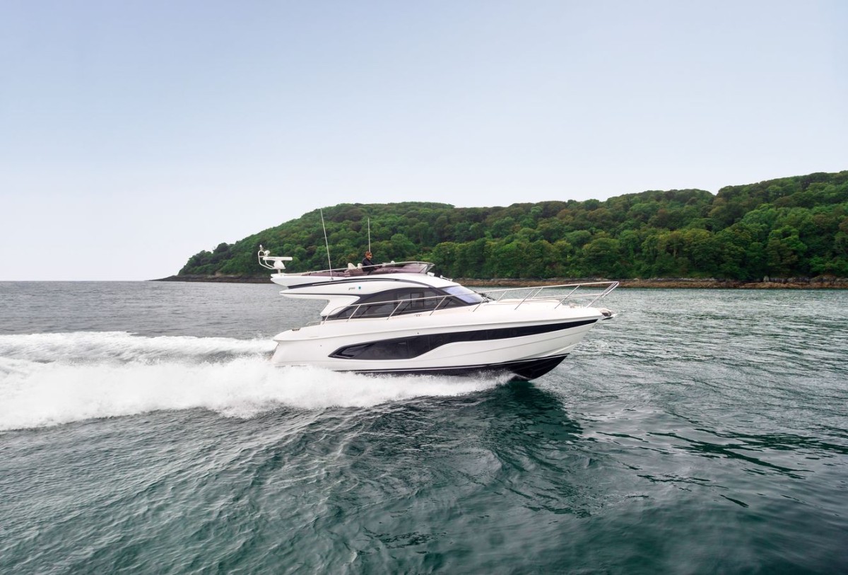 - Twin transom gates leading to bathing platform (with optional electro-hydraulic raise/lower mechanism and dinghy chock system)