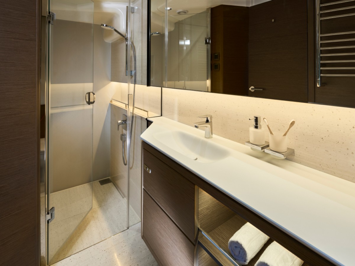 - Automatic/manual override electric bilge pumps in engine room (2), lazarette (2) and forward accommodation (6 in total)