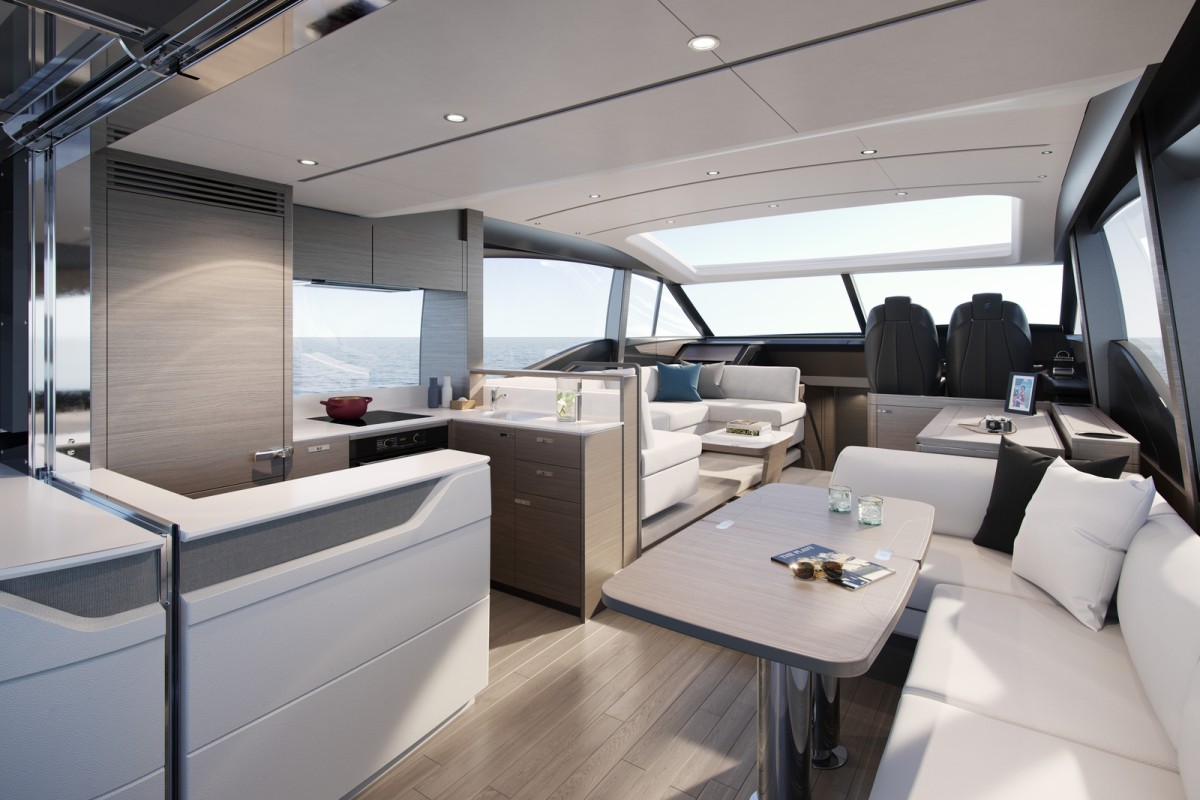 - L-shaped seating to starboard (converts to sunpad)