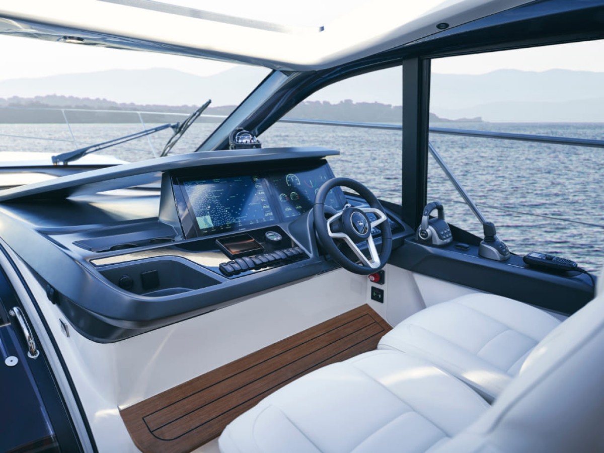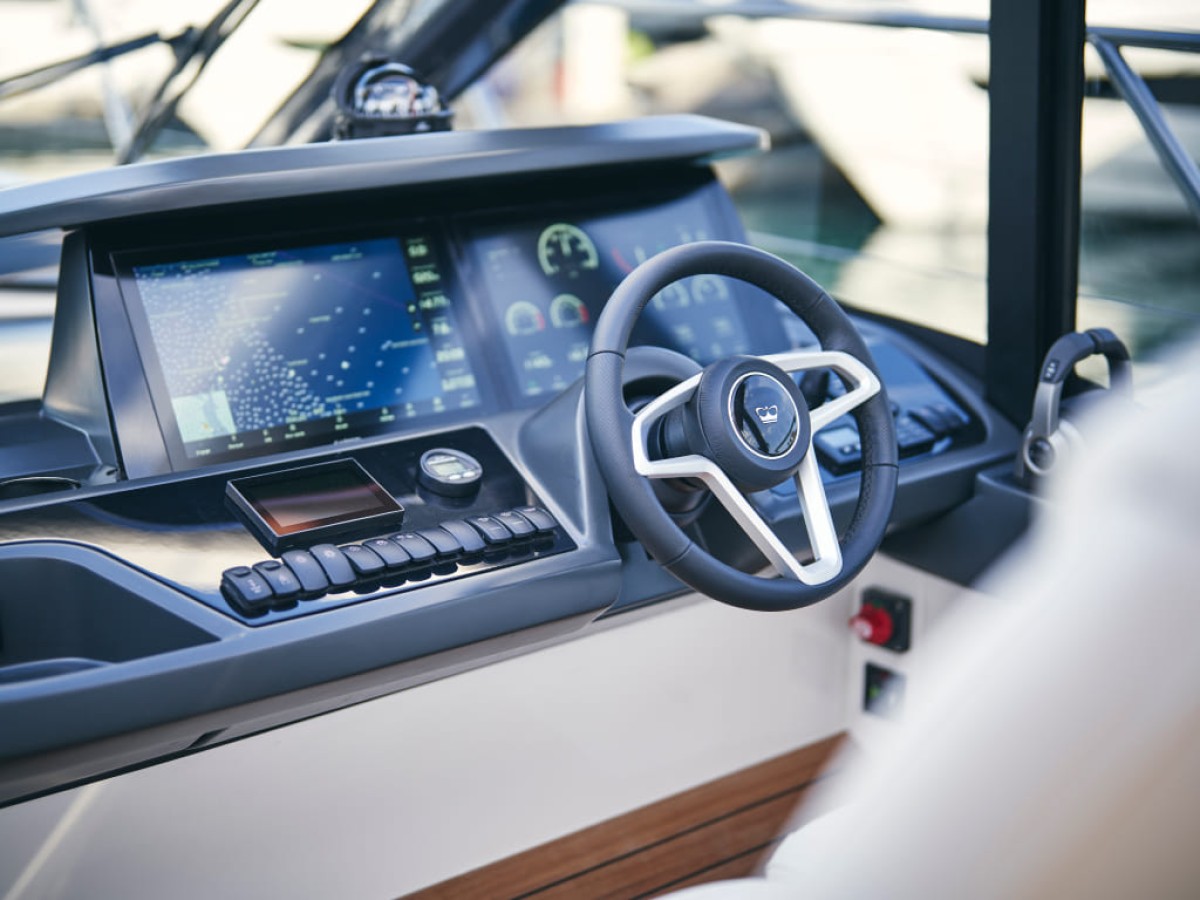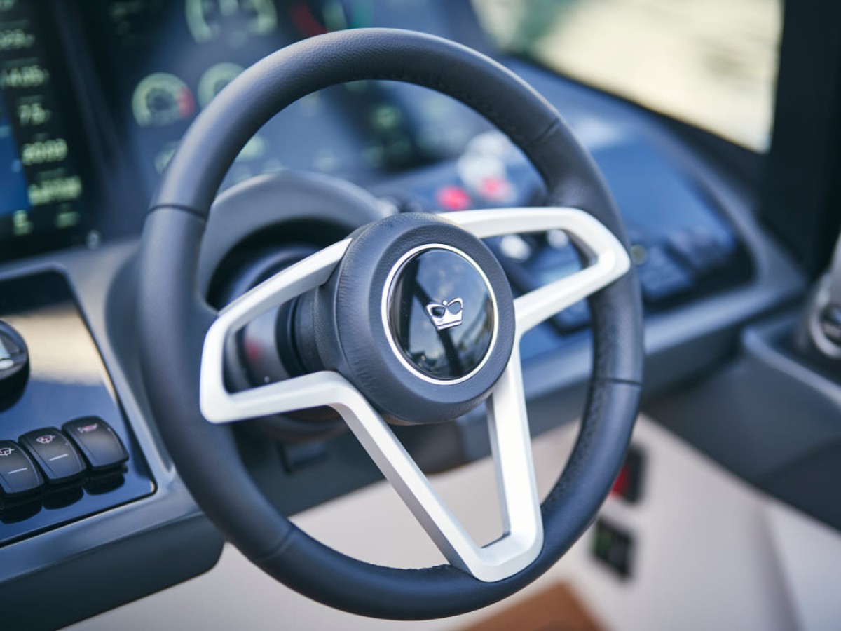 - Controls for windscreen wipers, bilge pump, anchor winch and trim tabs (with indicator)