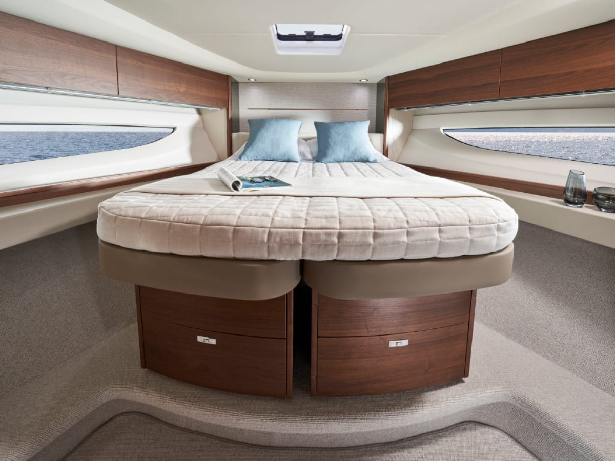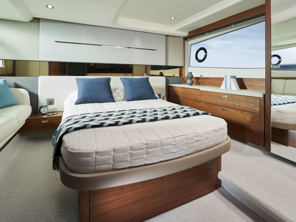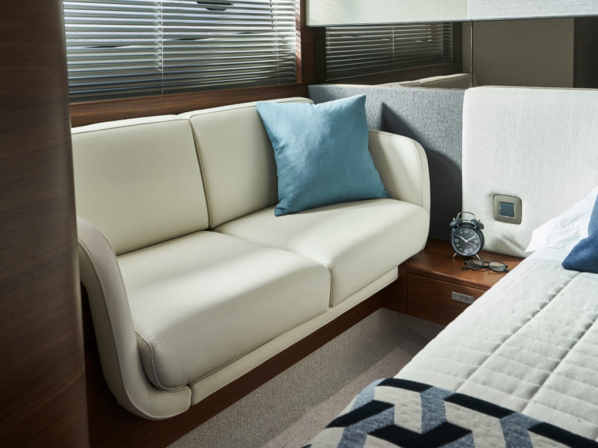 - Transom gate leading to bathing platform with foldaway swimming ladder and hot and cold shower (with optional electro-hydraulic raise/lower mechanism and dinghy chock system)