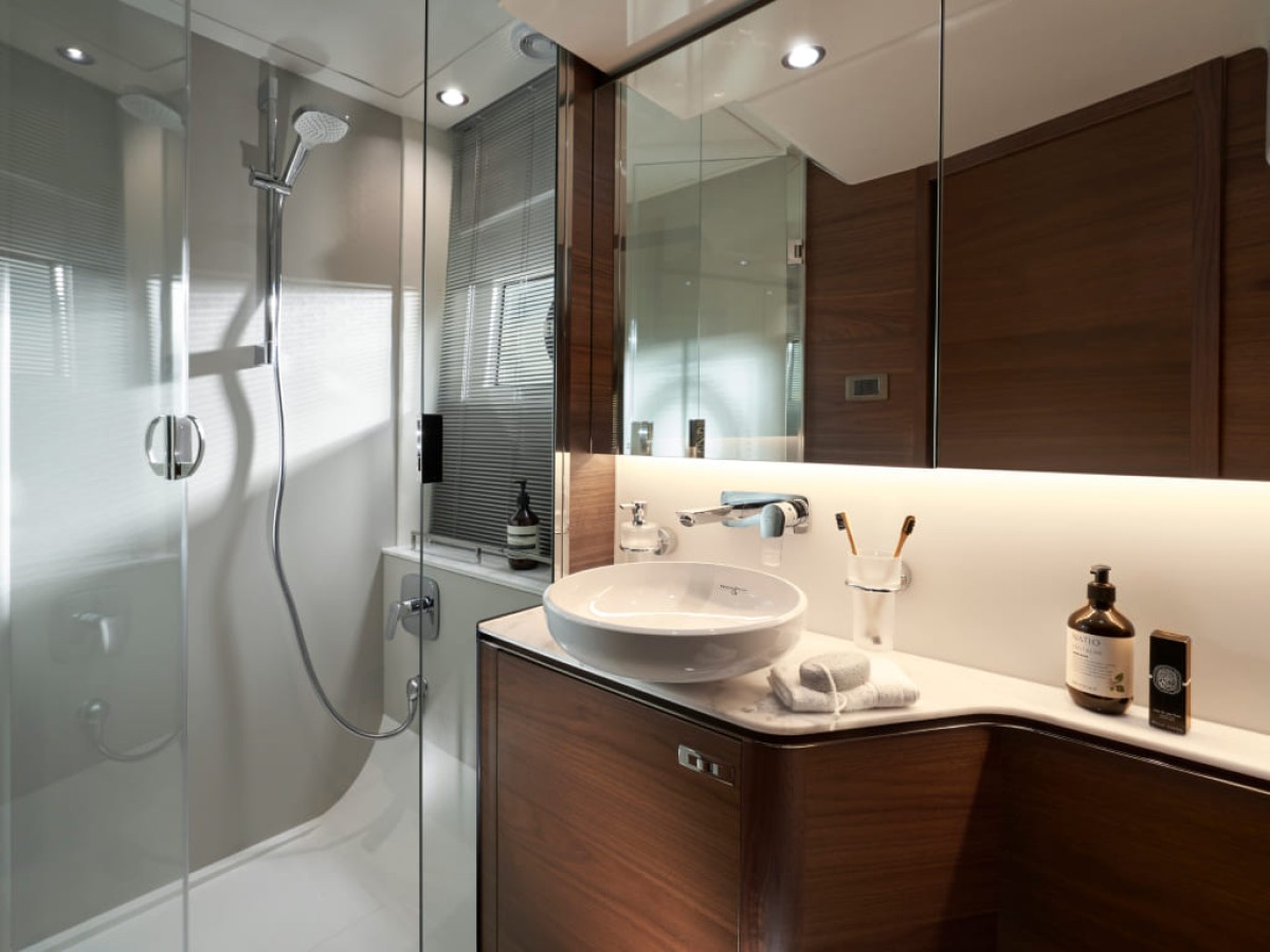 - All bathrooms feature full shower stalls, electric freshwater toilets, extractor fan and 240v shaver points