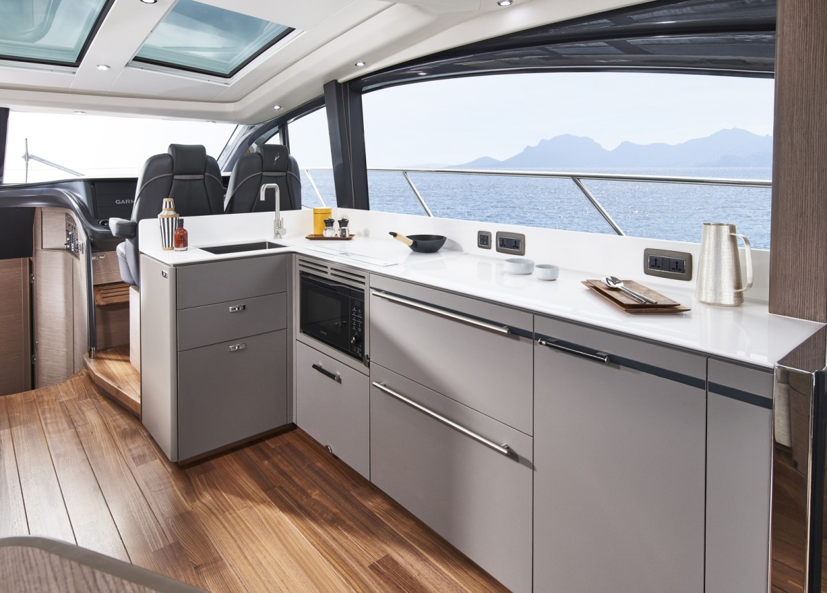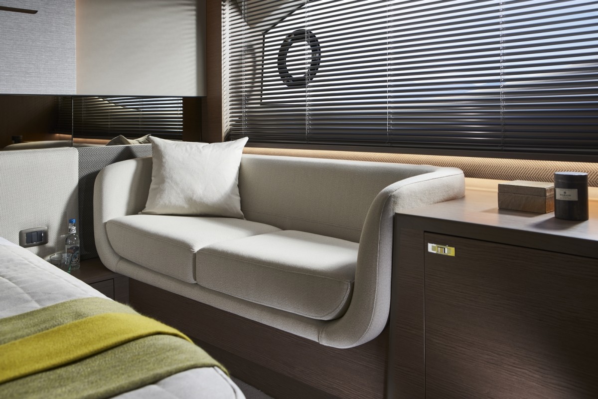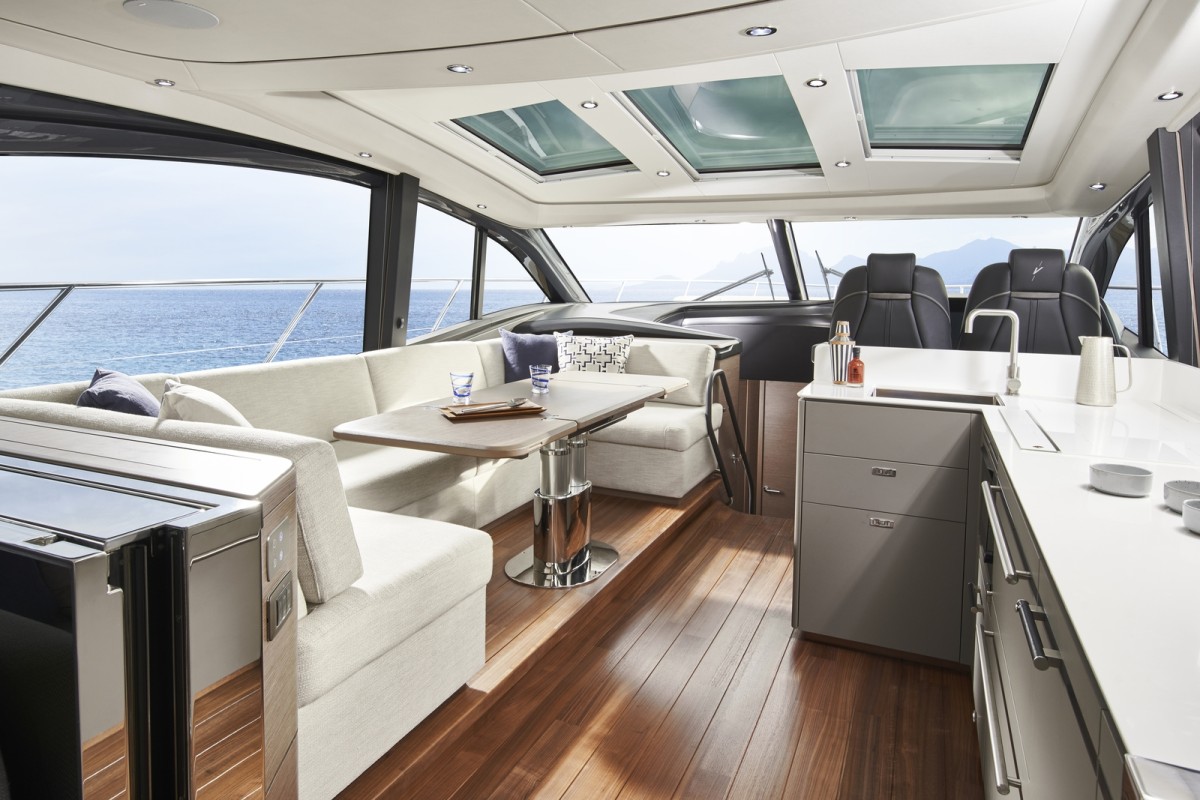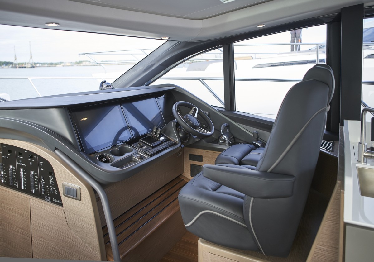 - Twin helm seats with electric adjustment for helmsman