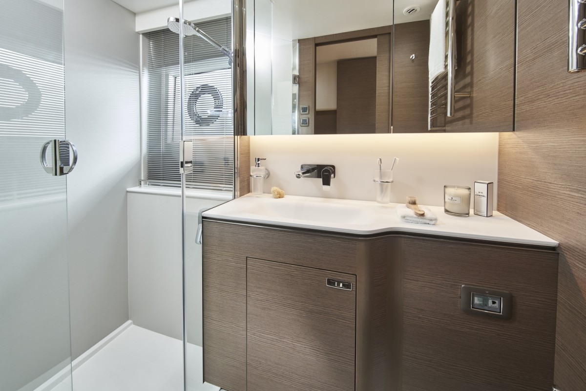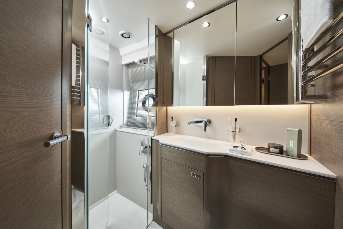 - Bathroom with shower, electric freshwater toilet and washbasin