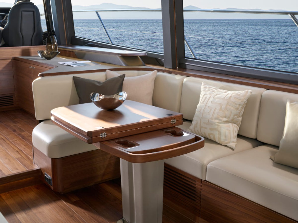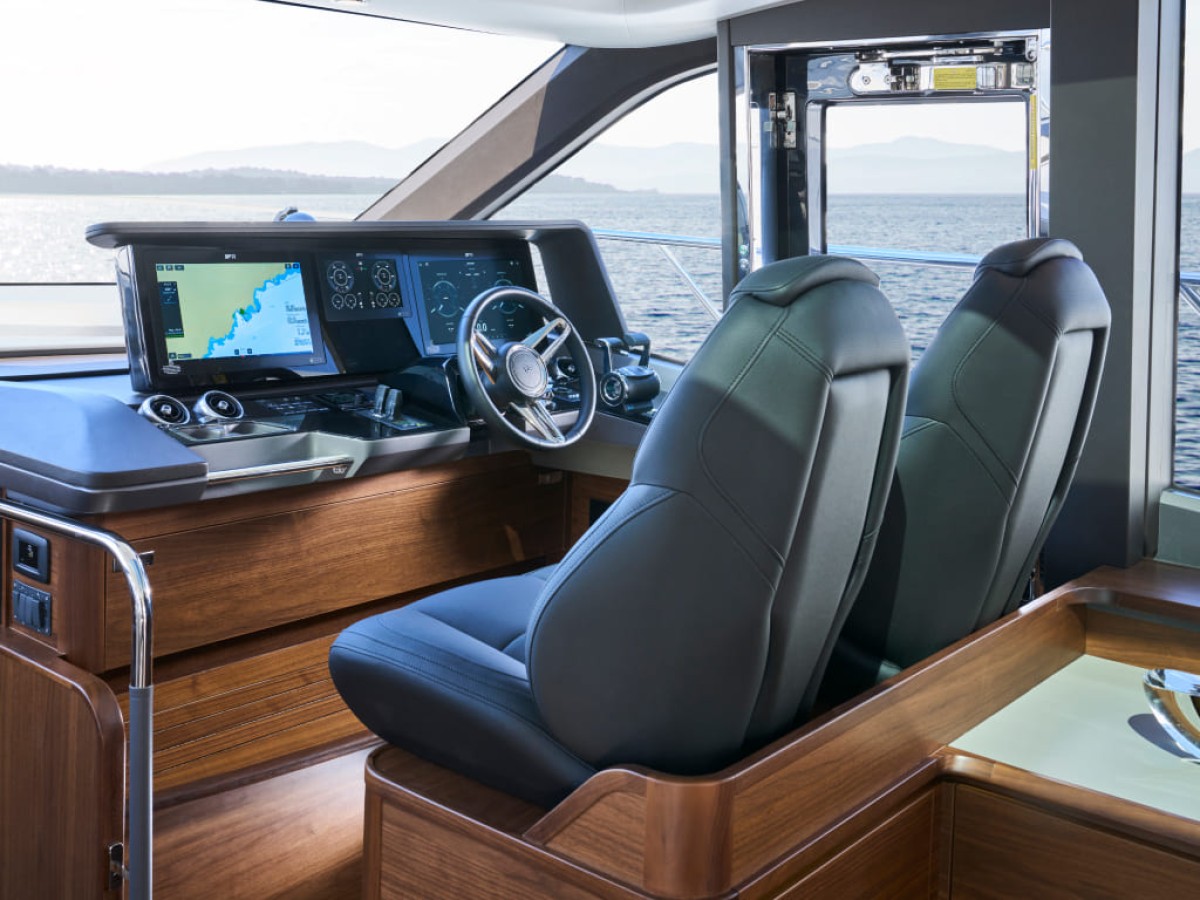 - Twin helm seats with electric adjustment for helmsman