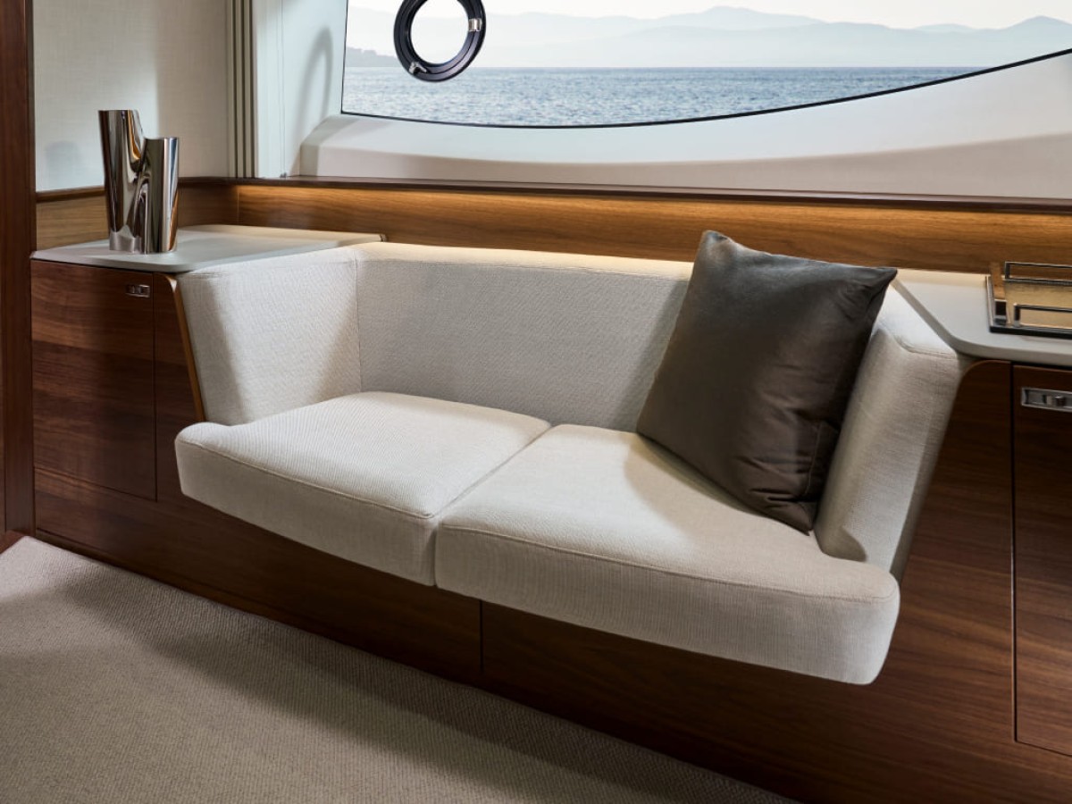 - Sunbed aft with garage with electro-hydraulic door and tender launch system with electric winch below (3.3m tender)