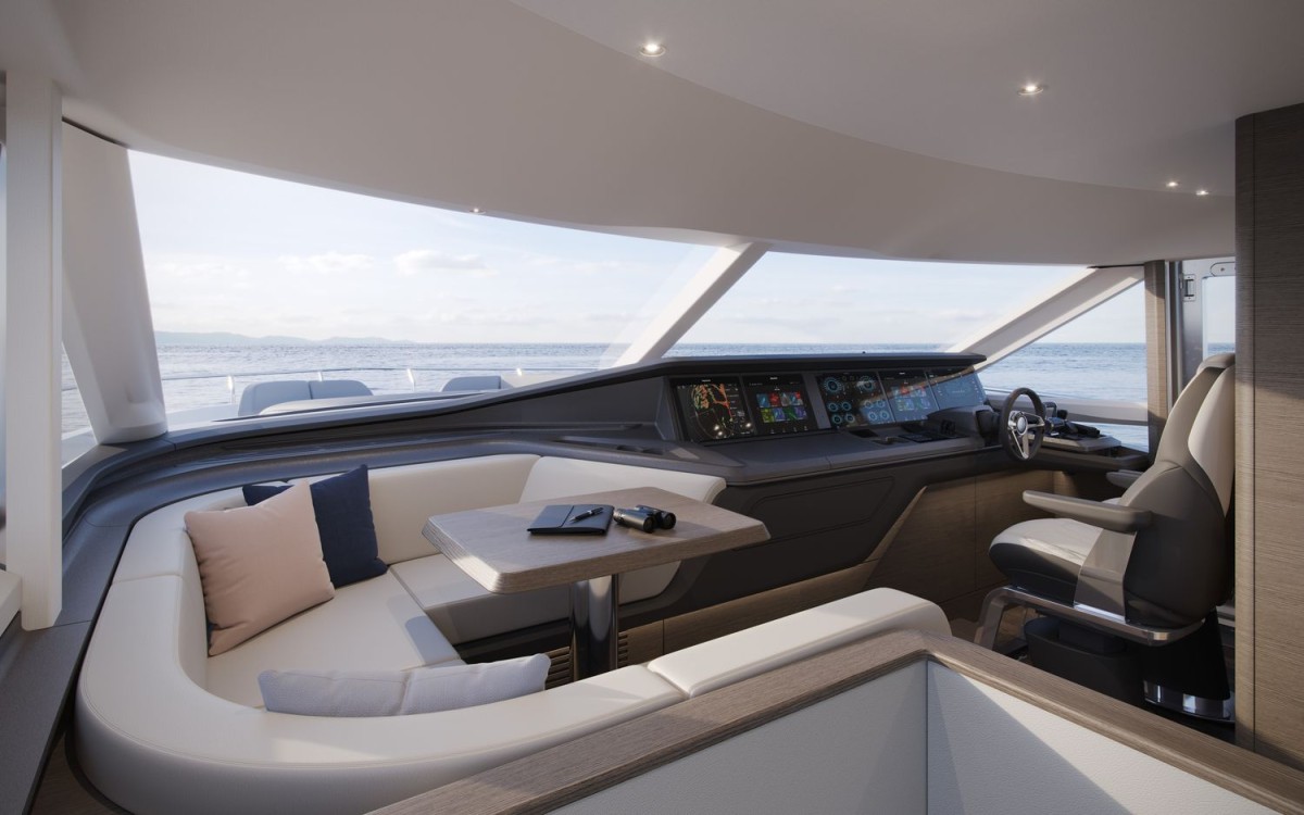 - Dual station instrument and controls console at wheelhouse/flybridge: