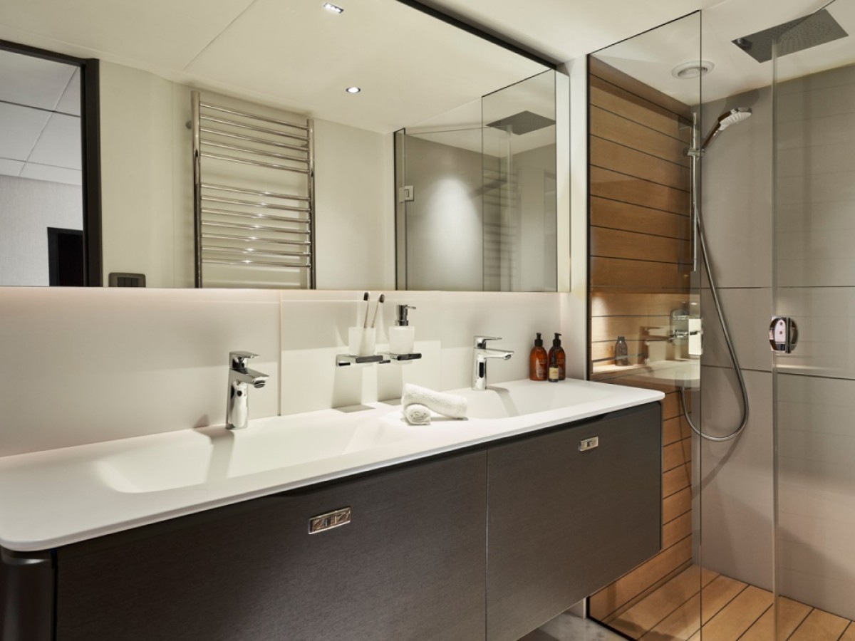 - Solid Surface floors in all bathroom suites in guest accommodation (including day head)