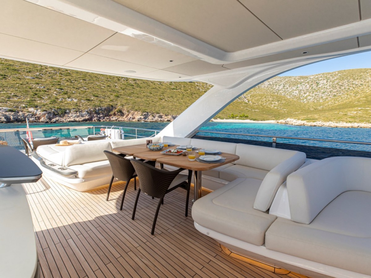 - Teak-laid decks to all external deck areas (including flybridge)
