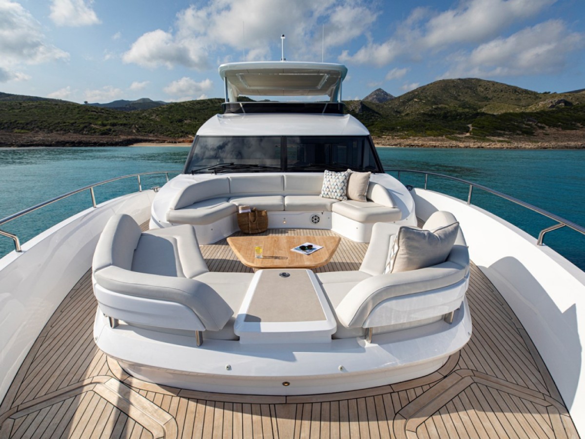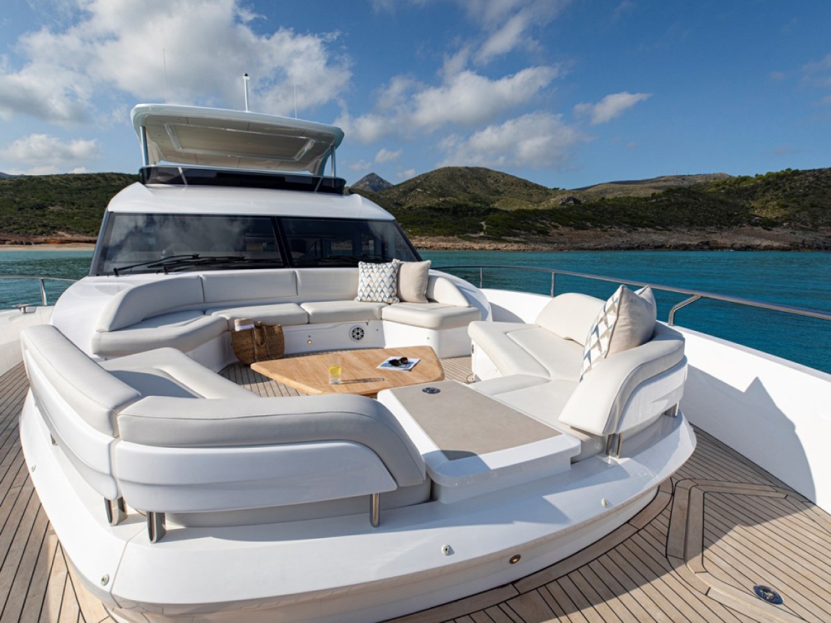 - Foredeck forward-facing U-shaped seating area with optional coffee table